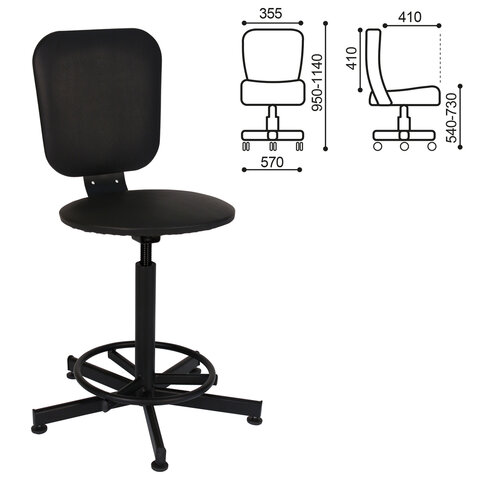 Кресло кассира, ресепшн РС37, без подлокотников, кожзам, черное