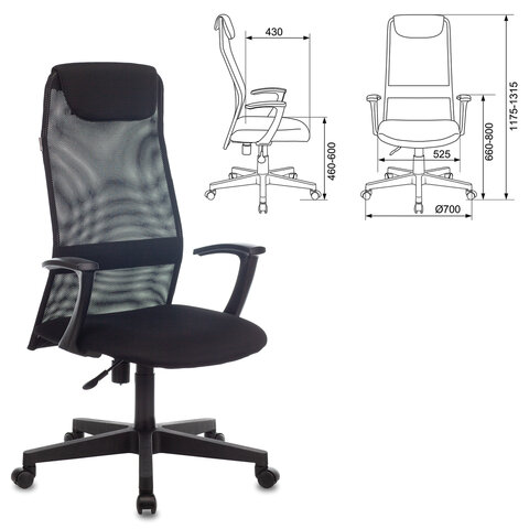 Кресло офисное KB-8, ткань-сетка, черное, 492617