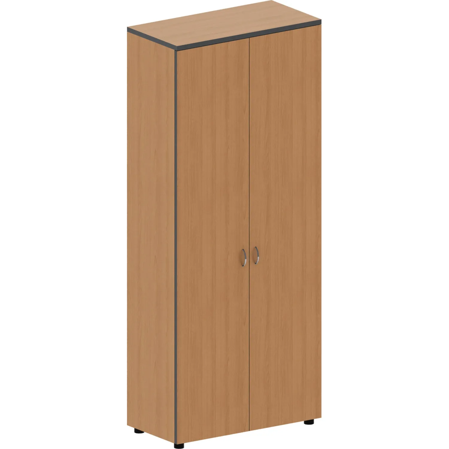 Гардероб Агат офисного дизайна. Корпус цвета ольха выполнен из ламинированных древесно-стружечных плит, кромки защищены от повреждений пленкой ПВХ. Распашной гардероб закрытого типа устанавливается на регулируемые опоры, комплектуется выдвижной штангой и съемными полками. Размеры гардероба 1910×400×800 мм.