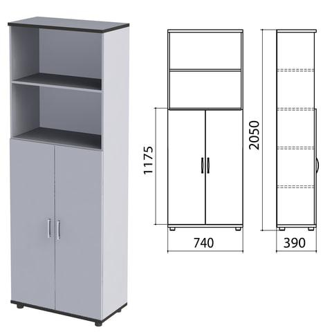 Шкаф полузакрытый "Монолит", 740х390х2050 мм, цвет серый (КОМПЛЕКТ)
