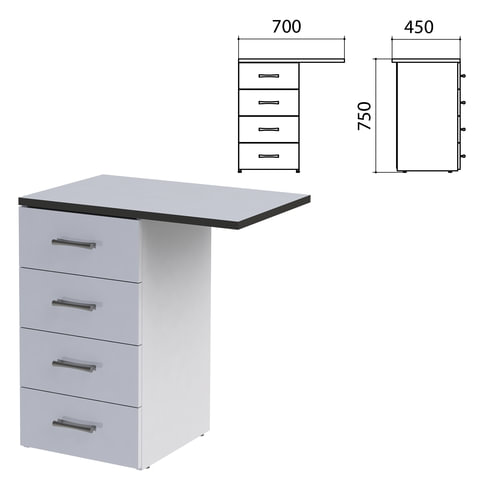 Тумба приставная "Монолит", 700х450х750 мм, цвет серый (КОМПЛЕКТ)