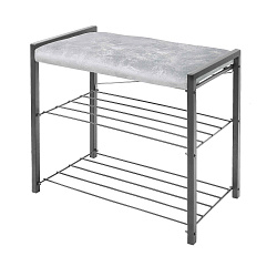 Банкетка для обуви Nika ЭКТ3-60В/ГР, 2 полки с мягким сиденьем, 60 x 33 x 55,3 см, каркас матовый черный