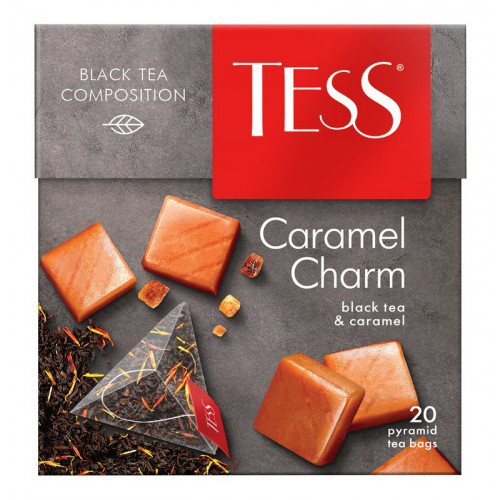 Tess Сaramel Charm- нежный карамельный вкус и чудесный сладковато-сливочный аромат преображают сдержанный характер классического черного чая, даря ему новую соблазнительную прелесть.