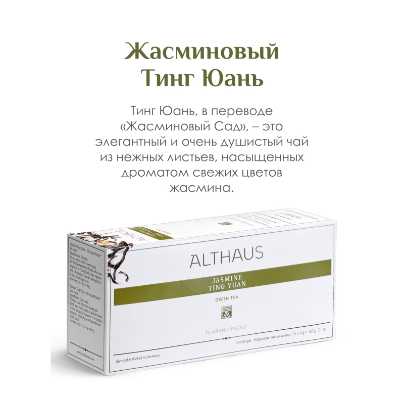 Чай зеленый Althaus Grand Pack Jasmine Ting Yuan для чайника, 15 пакетиков х 4 гр