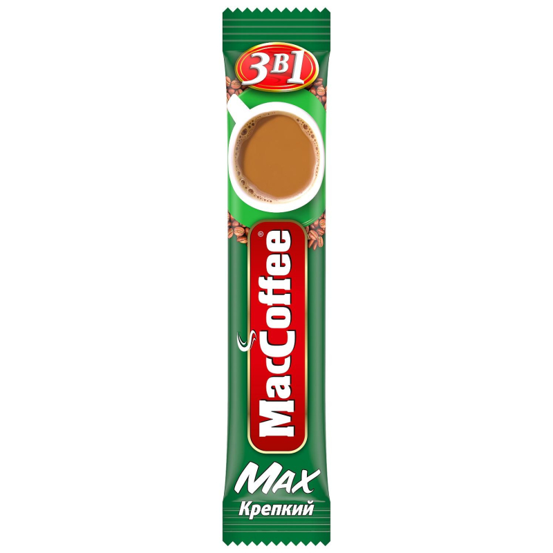 Кофейный напиток MacCoffee Maх 3в1 Крепкий — насыщенный крепкий вкус кофе, который взбодрит в любое время дня для любых свершений. Состав: сахар, заменитель сливок на основе растительного жира [глюкозный сироп, растительный жир, обезжиренное сухое молоко, молочный белок, стабилизаторы (Е340ii, E452i), эмульгаторы (E471, E481), агент антислеживающий (Е551), регулятор кислотности (451i)], кофе натуральный растворимый. Пищевая ценность на 100 г продукта: Белки — 3,75 г, Жиры — 10 г, Углеводы — 83,5 г Энергетическая ценность на 100 г продукта: Ккал — 437, кДж — 1856 Вид кофе: 3 в 1. Способ приготовления: высыпать содержимое пакетика в чашку. Добавить 170 мл горячей воды и размешать. Вес: 20 пакетиков по 16 г. Тип упаковки: картонная коробка. Условия хранения: хранить в сухом прохладном месте. Страна производства: Россия. ТУ 9198-001-78073247.