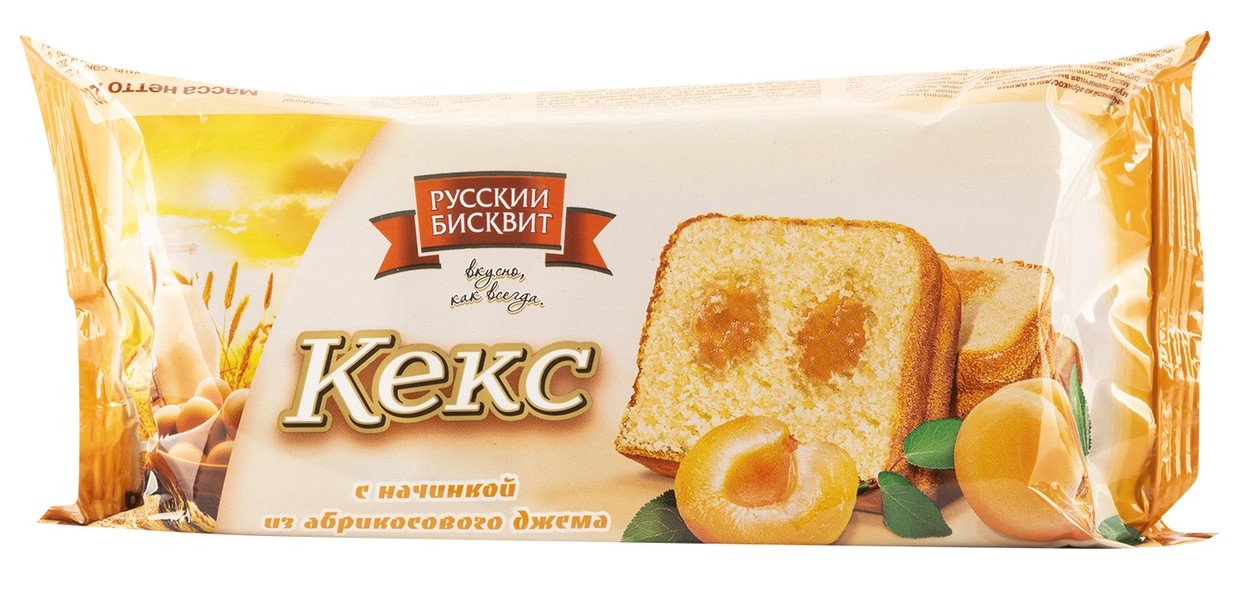Кекс ""Русский бисквит"" абрикосовый — вкусный десерт, который не только содержит натуральные и вкусные ингредиенты, но и подарит заряд хорошего настроения. Поделитесь удовольствием с близкими. Герметичная упаковка надежно сохраняет свежесть и вкусовые свойства продукта в течение всего срока годности.