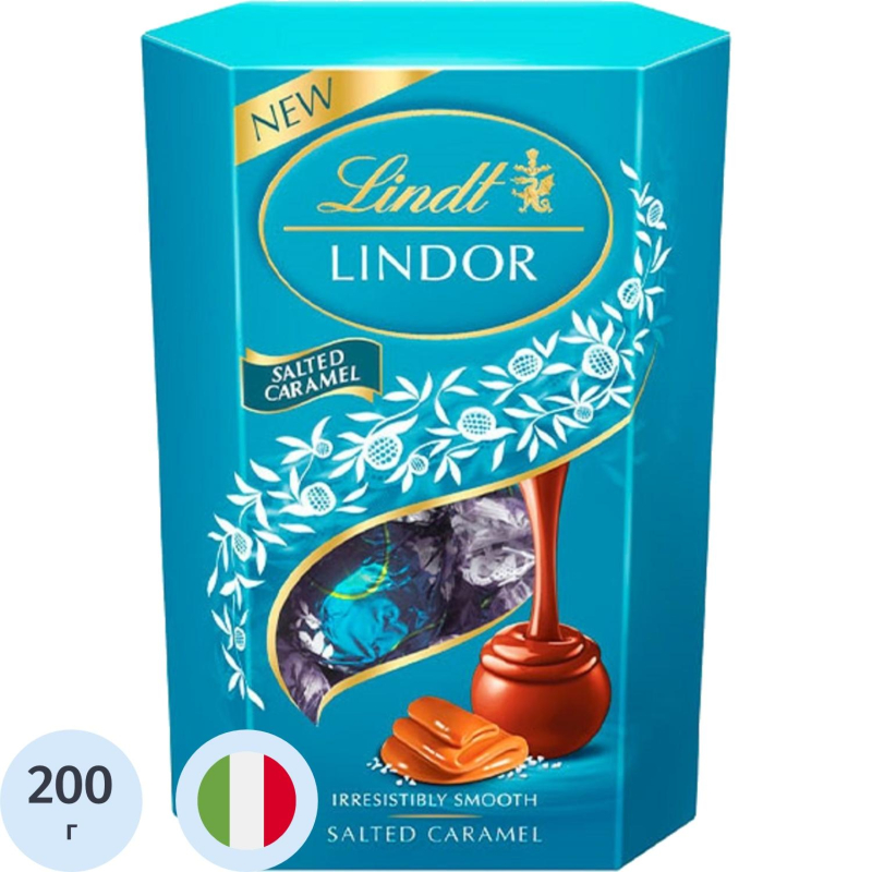 Конфеты LINDOR из молочного шоколада с солью и карамельной нач пралине,200г