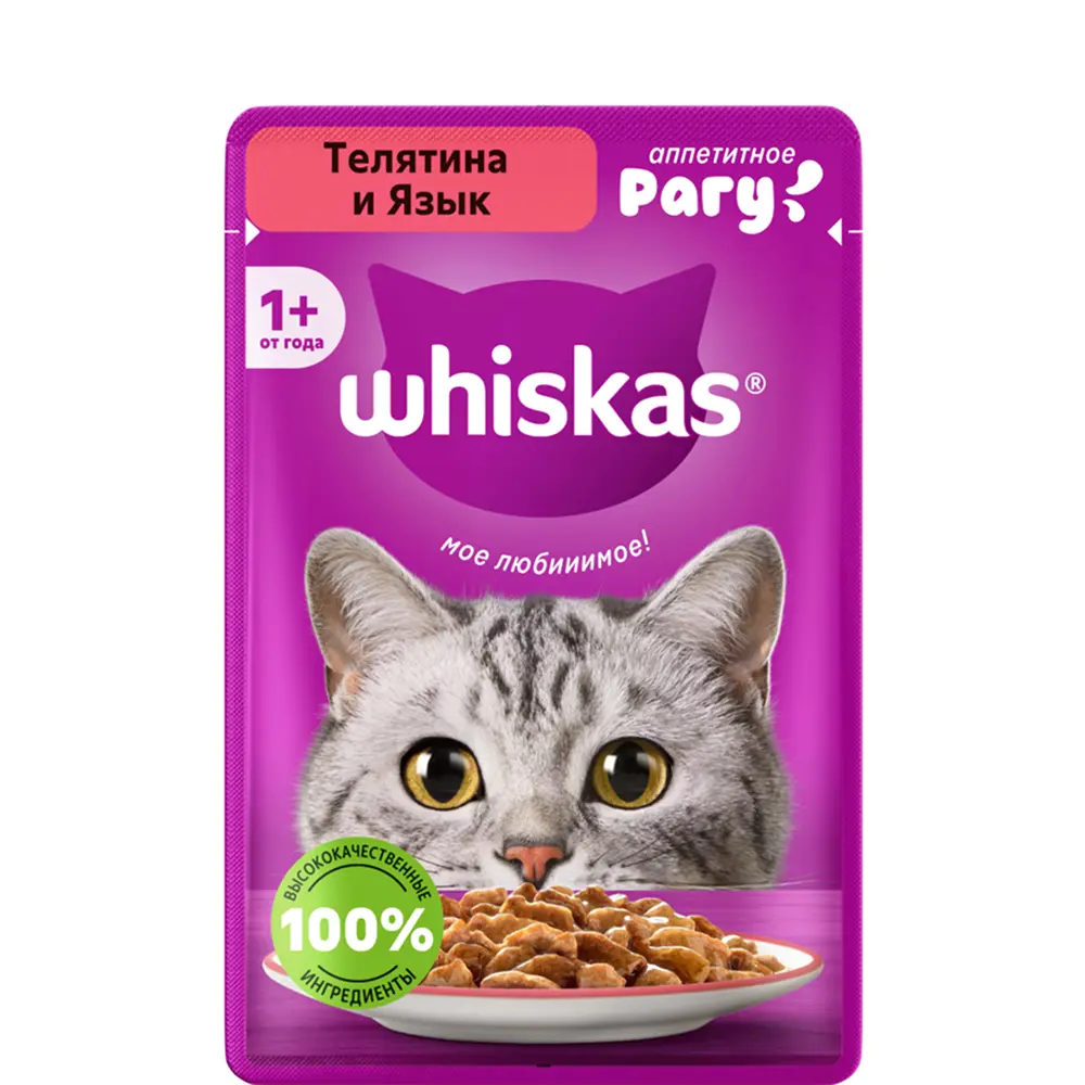 Аппетитное рагу с телятиной и языком в густом соусе обязательно понравится вашей любимице. Рацион Whiskas® содержит все необходимое, чтобы еда вашей кошки была не только вкусной, но и полезной. Whiskas® поддержит иммунитет, позаботится о здоровом пищеварении и здоровье кожи и шерсти вашей кошки. Подходит для стерилизованных котов и кошек.