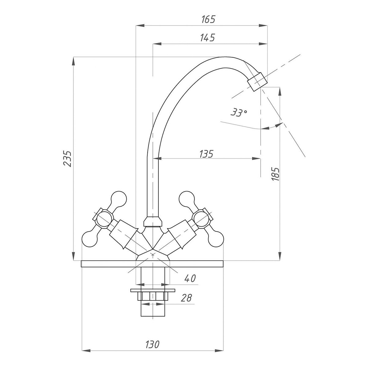 Смеситель для кухни Fauzt FZs-211-06, двухвентильный, хром