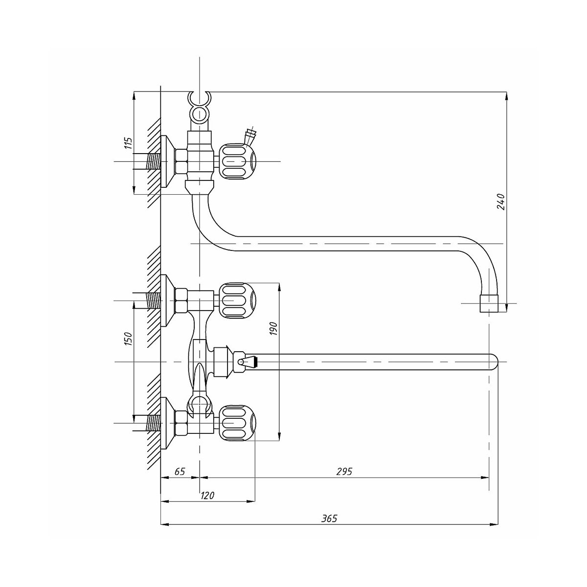 Смеситель предназначен для подачи воды в ванну, обеспечивает комфортное использование душа. Устанавливается на вертикальная поверхность.