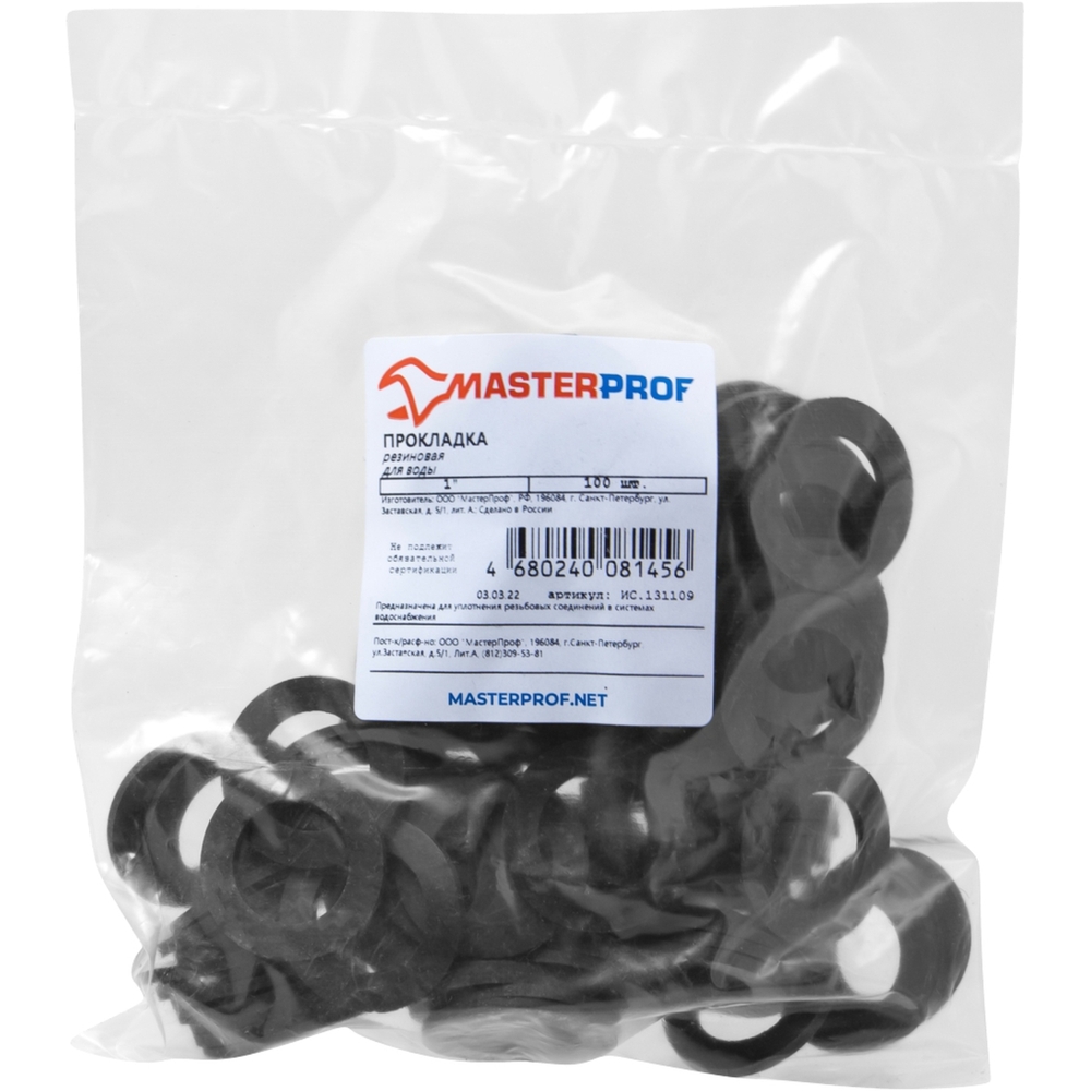 Прокладка для воды MasterProf, резиновая, 1", 100 штук