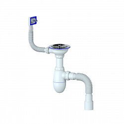 Сифон бутылочный Unicorn B425P, с выпуском 3 1/2" x 40 мм, с прямоугольным переливом и гофротрубой