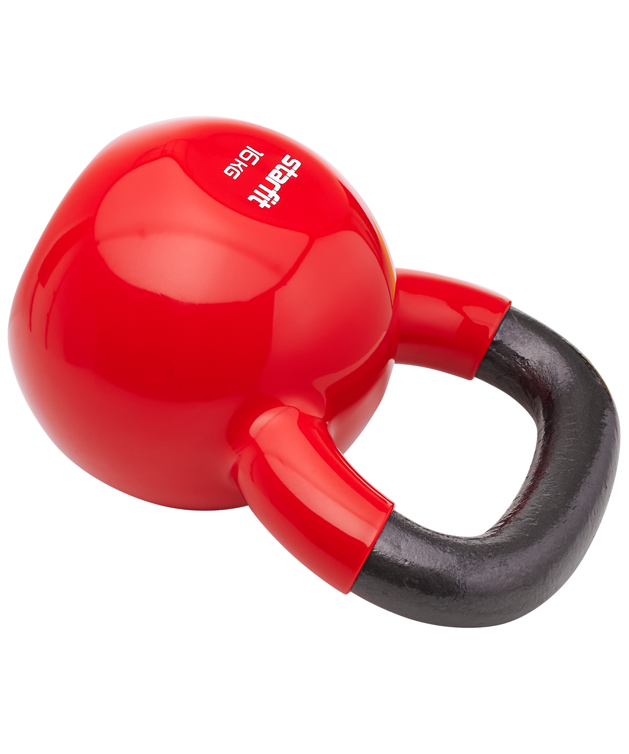 Сверху гиря покрыта слоем винила. Контрастная вставка не только придает снаряду презентабельный вид, но не царапает поверхность напольного покрытия. Благодаря ей спортивный инвентарь не издает много шума при случайных падениях.