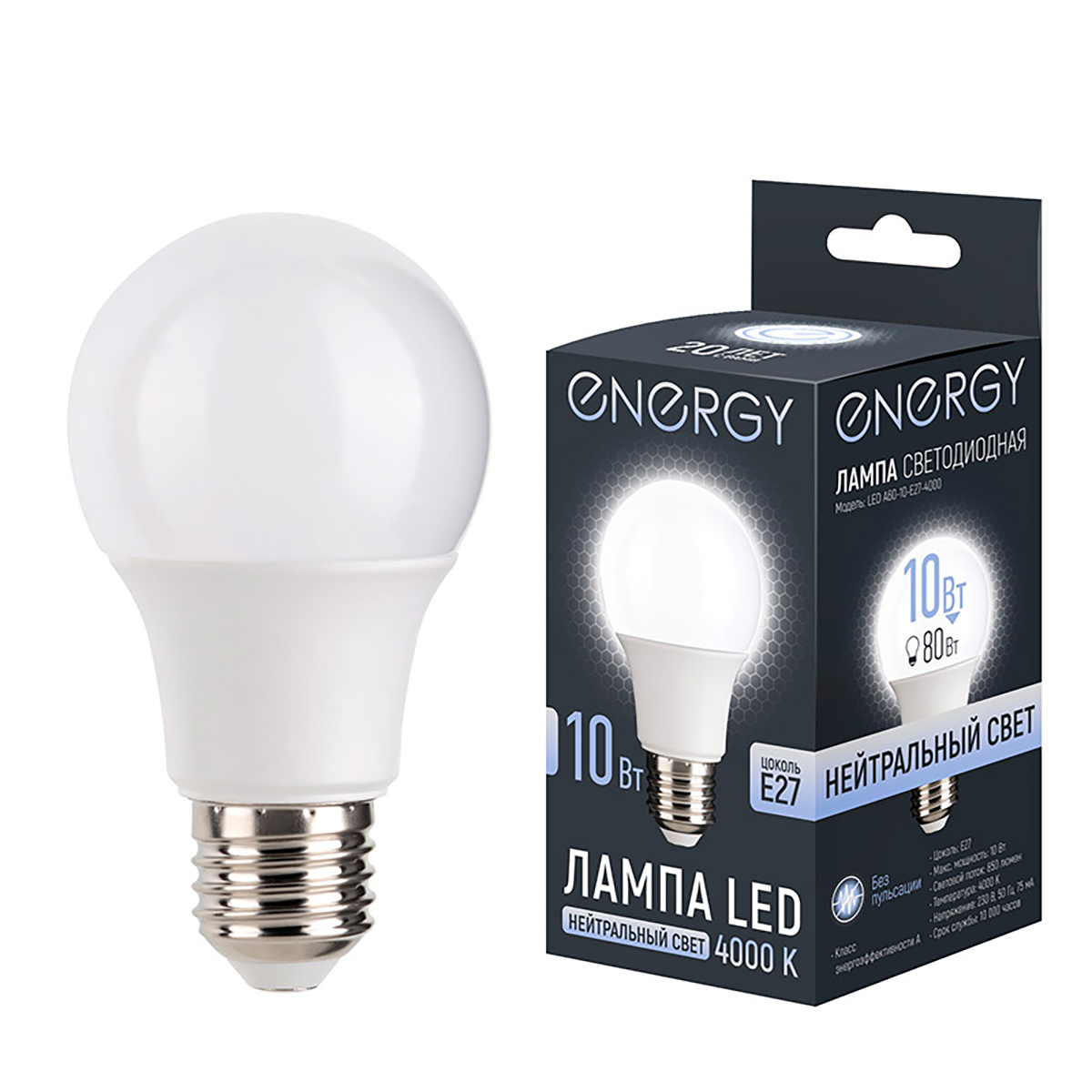 Лампа светодиодная матовая Energy, E27, груша, 10 Вт, 4000 K, нейтральный свет