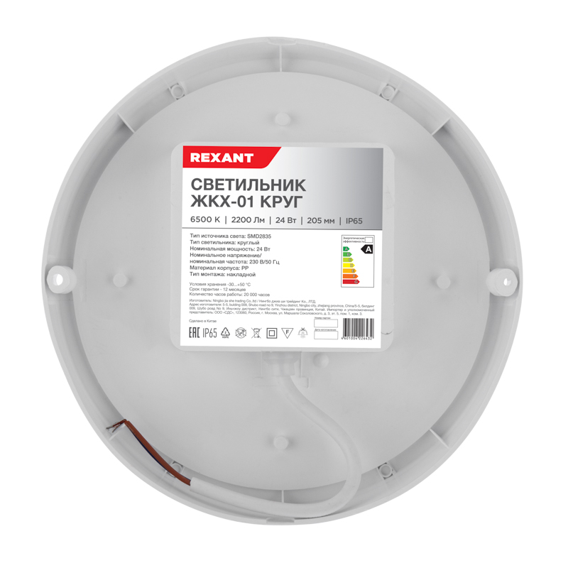 Светильник ЖКХ LED пылевлагозащищенный круг IP65 24Вт 2200Лм 6500K REXANT