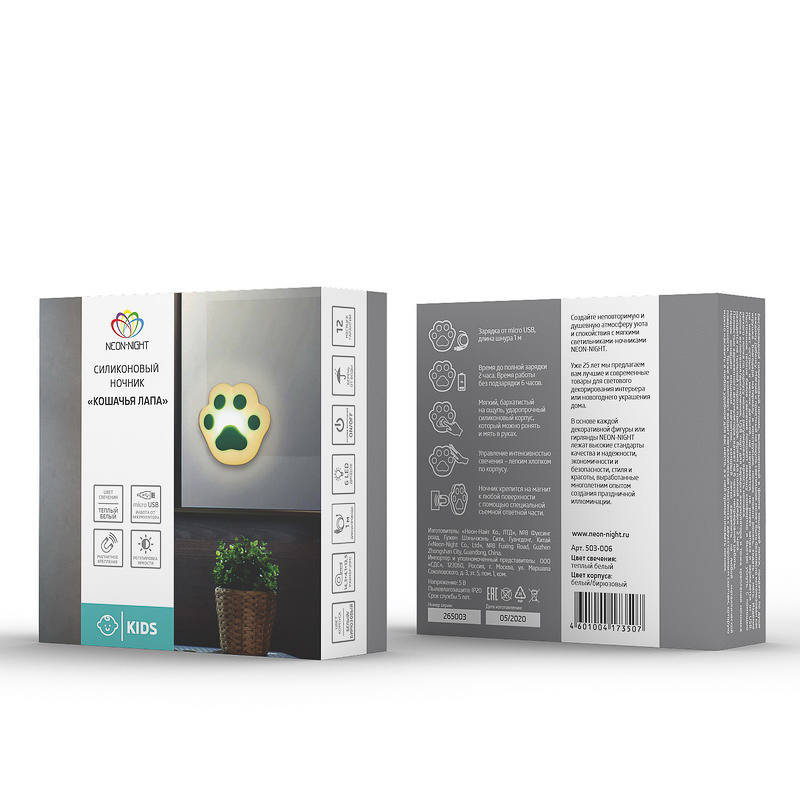 Силиконовый ночник «Кошачья лапа», выполненный в бирюзовом цвете, станет верным помощником вашего ребенка, способным настроить на быстрое засыпание и безмятежный комфортный сон. Изделие произведено из безопасного силикона, который вызывает только приятные ощущения при прикосновении. Ночник заряжается через USB-порт, время работы от одного заряда 6 часов. Для фиксации на поверхностях можно воспользоваться двухсторонним скотчем, а встроенный магнит надежно удержит небольшой вес на любых металлических основаниях. Один режим работы предусматривает постоянное белое свечение теплого оттенка.