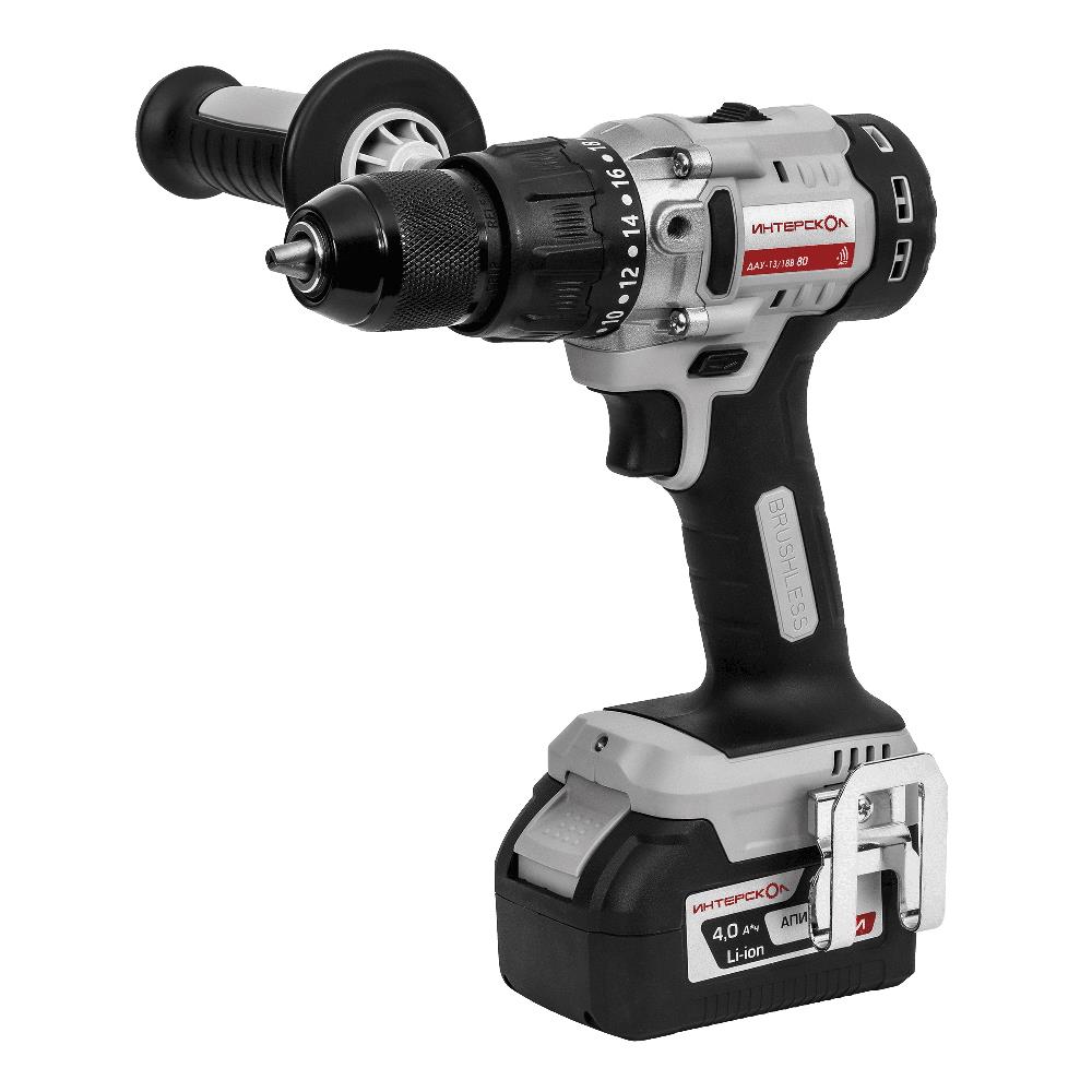 Бесщеточная аккумуляторная ударная дрель-шуруповерт ИНТЕРСКОЛ ДАУ-13/18В 80 ( АКБ 4 Ач и ЗУ, кейс)
