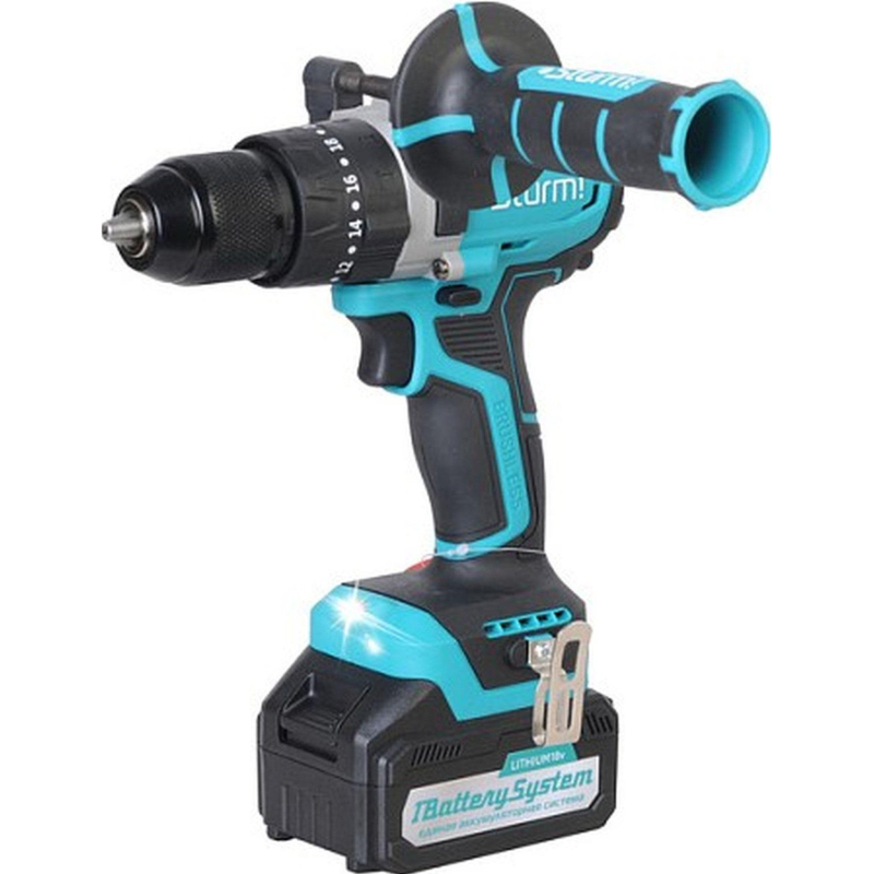 Дрель-шуруповерт аккумуляторная Sturm CD2080 бесщеточная 2 АКБ х Li-ion (18В, 3 Ач)+ЗУ в кейсе.