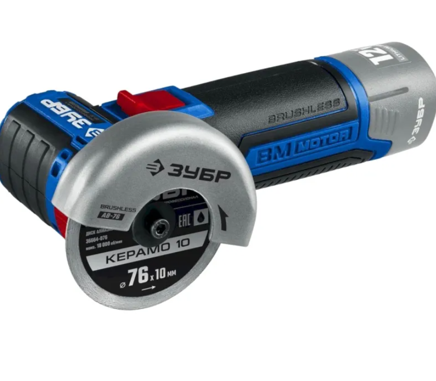 Шлифмашина угловая бесщеточная аккумуляторная ЗУБР AB-76, 12 В, без АКБ