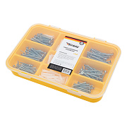 Набор состоит из 260 крепежных элементов, которых хватит для выполнения множества задач, поставляется в пластиковом органайзере, который помогает не только удобно хранить изделия, но и быстро находить крепеж нужного размера. Органайзер может в дальнейшем использоваться для хранения других крепежных элементов.