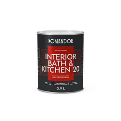 Краска интерьерная влагостойкая Komandor Interior Bath&Kitchen 20, полуматовая, база А, белая, 0,9 л