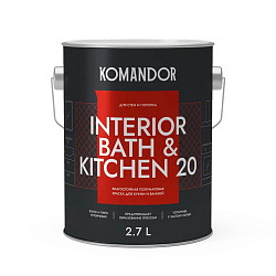 Краска интерьерная влагостойкая Komandor Interior Bath&Kitchen 20, полуматовая, база А, белая, 2,7 л