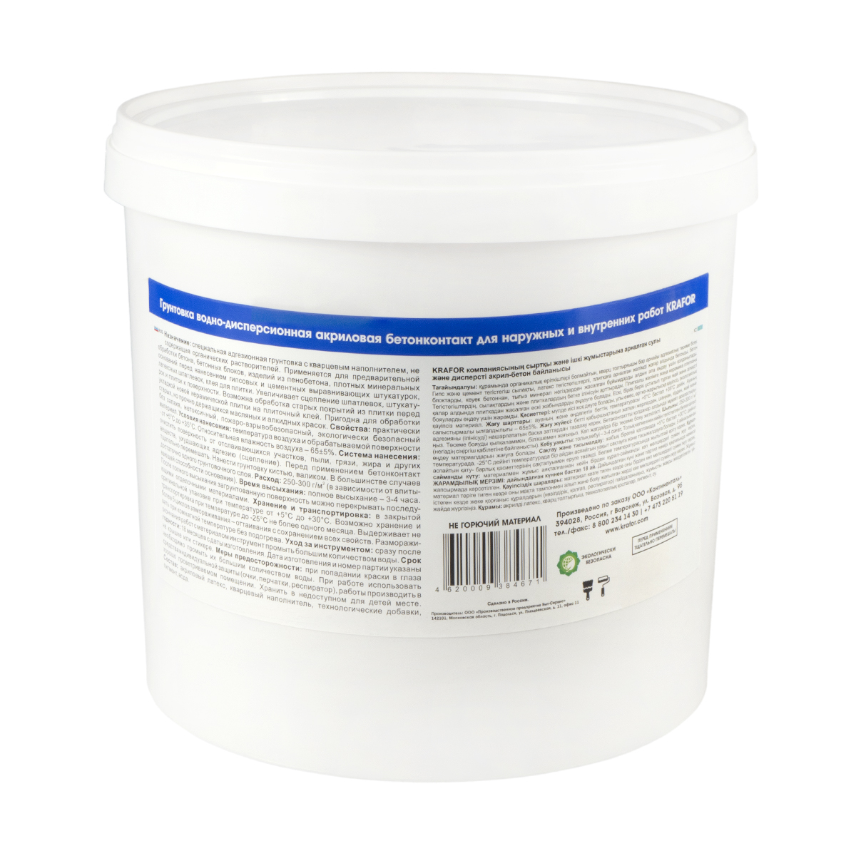 Грунтовка водно-дисперсионная «бетонконтакт» для наружных и внутренних работ акриловая Krafor. Специальная адгезионная грунтовка с кварцевым наполнителем, не содержащая органических растворителей.