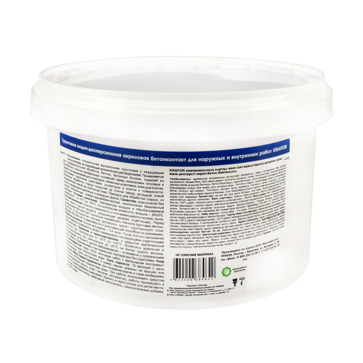Грунтовка водно-дисперсионная «бетонконтакт» для наружных и внутренних работ акриловая Krafor. Специальная адгезионная грунтовка с кварцевым наполнителем, не содержащая органических растворителей.