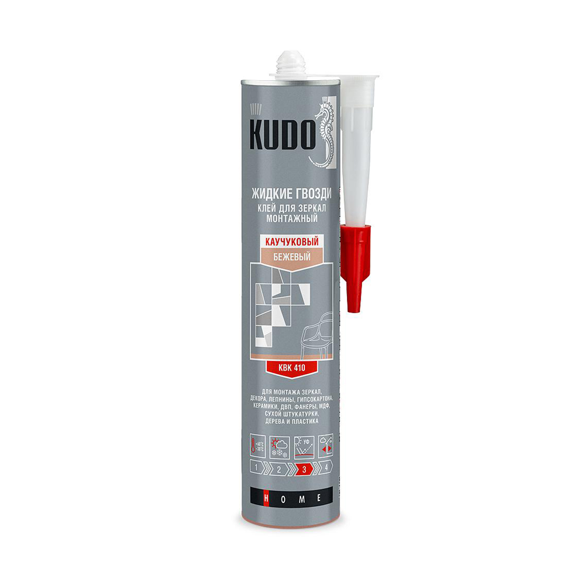 Клей монтажный для зеркал Kudo KBK-410, каучуковый, 300 мл, бежевый
