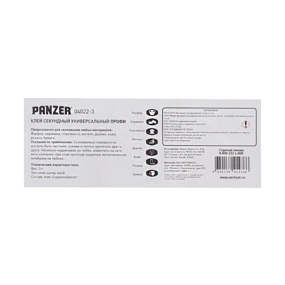 Клей секундный универсальный Panzer Профи, 3 г