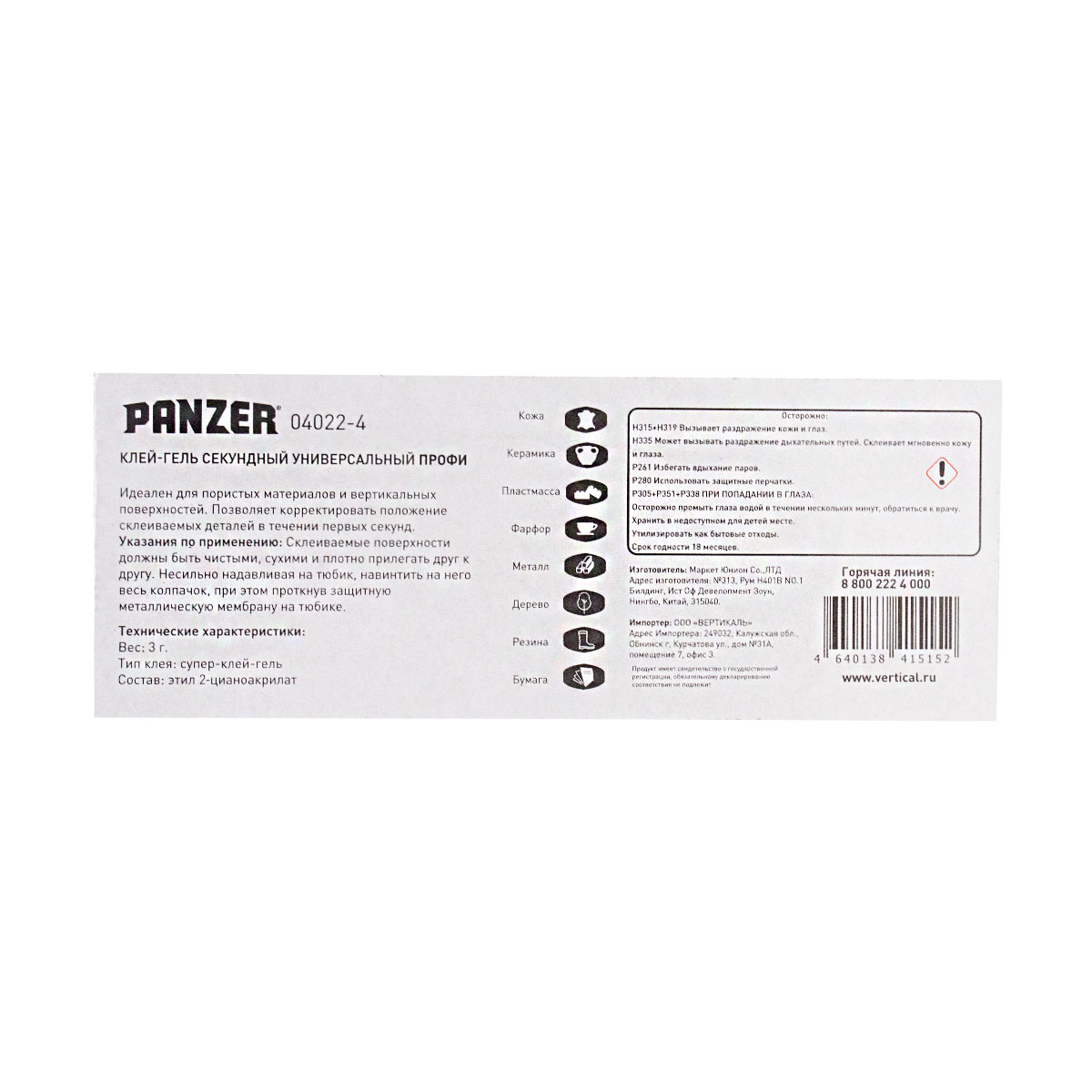 Клей секундный универсальный Panzer Профи, гель, 3 г
