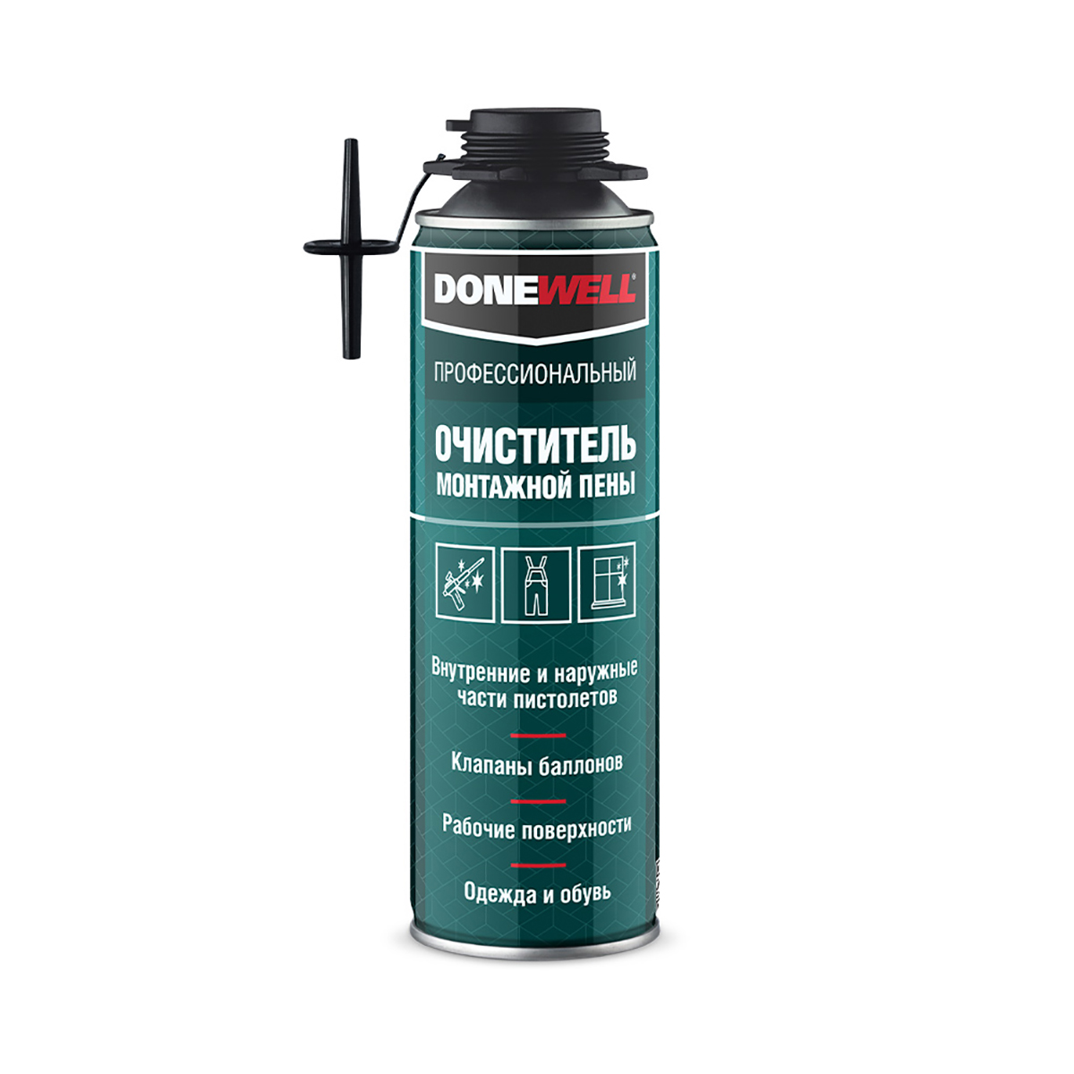 Применяется для удаления загрязнений незатвердевшей однокомпонентной полиуретановой монтажной пены.