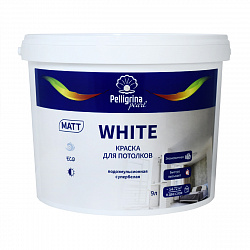 Краска для потолков Pelligrina Pearl White, водно-дисперсионная, матовая, база A, супербелая, 9 л