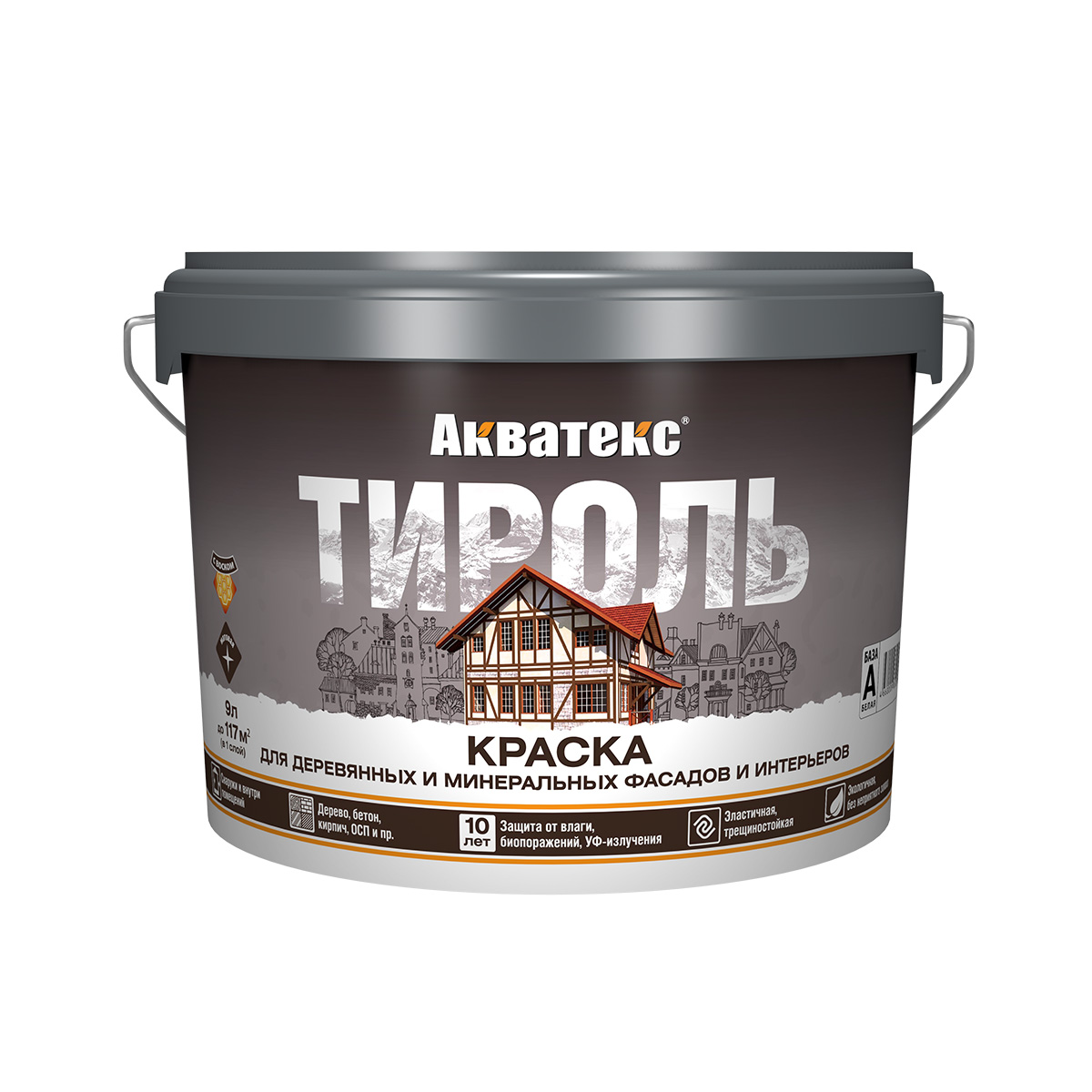 Краска фасадная Акватекс Тироль, матовая, база А, белая, 9 л