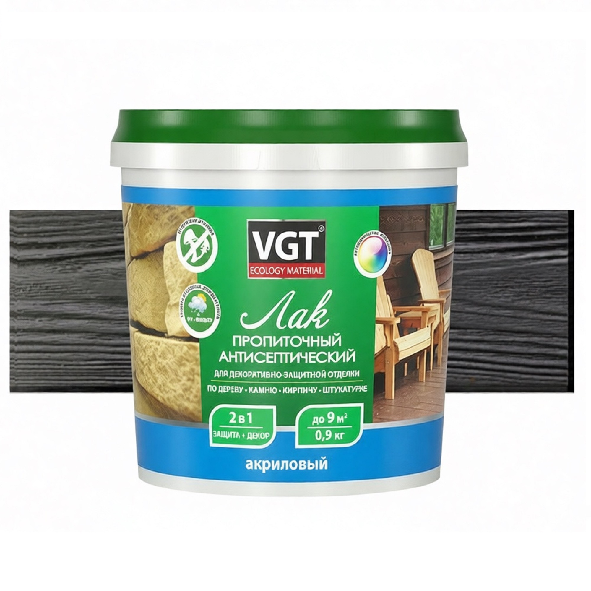 Лак пропиточный с антисептиком для дерева и камня VGT, акриловый, 0,9 кг, графит