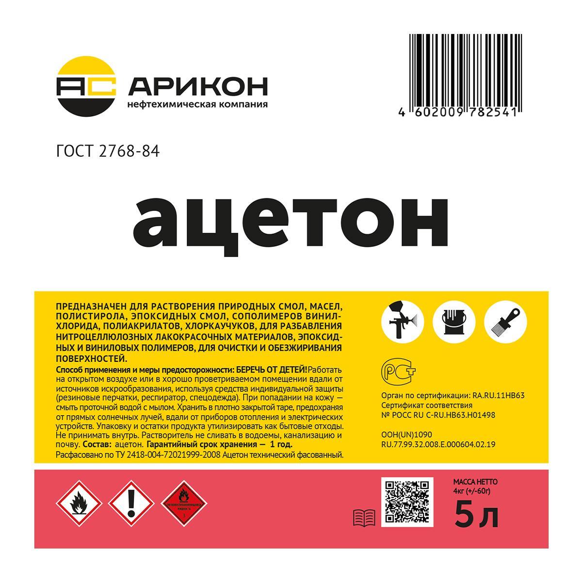 Состав: ацетон; Цвет: прозрачный; Объем: 5 л.