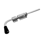 Засов с большим цельнометаллическим корпусом и пружинным механизмом, который перемещает стальной усиленный ригель. Пружина автоматически приводит засов в положение «закрыто». Простая установка сочетается с удобством эксплуатации. Большой ход ригеля обеспечивает удобство запирания как при горизонтальном, так и при вертикальном положении засова.