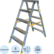 Стремянка двухсторонняя алюминиевая анодированная, 5 ст., ALUMET