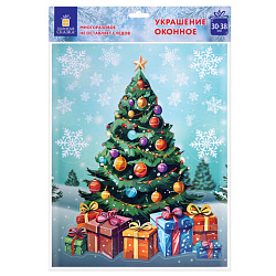 Наклейка для окон двусторонняя, 30х38 см, "Новогодняя ель", глиттер, серебро, ЗОЛОТАЯ СКАЗКА, 592577