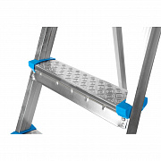— Прочная стальная рама из профиля прямоугольного сечения, а также широкие профилированные противоскользящие ступени являются надёжной основой для эксплуатации стремянки.