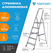 Стремянка алюминиевая 5 ступеней TOPFORT
