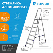 Стремянка алюминиевая 7 ступеней TOPFORT