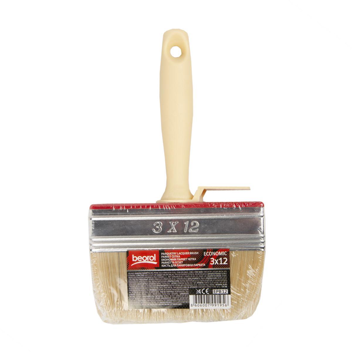 Кисть для лакировки паркета (макловица) Beorol Economy, натуральная щетина, 30 x 120 мм