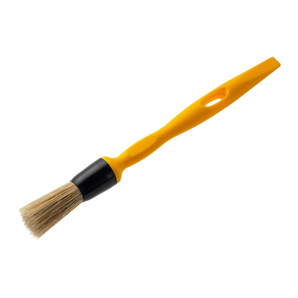 Кисть Эксперт круглая из светлой смешанной щетины оснащена длинной желтой пластиковой ручкой.
