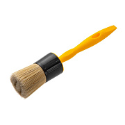 Кисть Эксперт круглая из светлой смешанной щетины оснащена длинной желтой пластиковой ручкой.