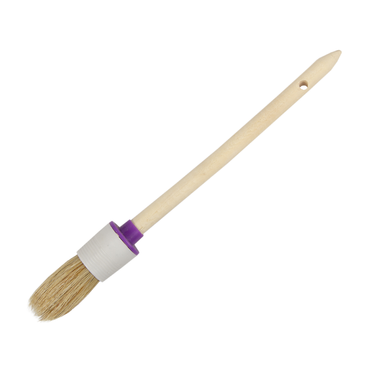Круглая кисть поможет без труда провести малярные работы. Имеет натуральную щетину диаметром 25 мм, которая обладает хорошими краскообменными свойствами и отлично удерживает лакокрасочный материал и равномерно распределяет краску по поверхности.