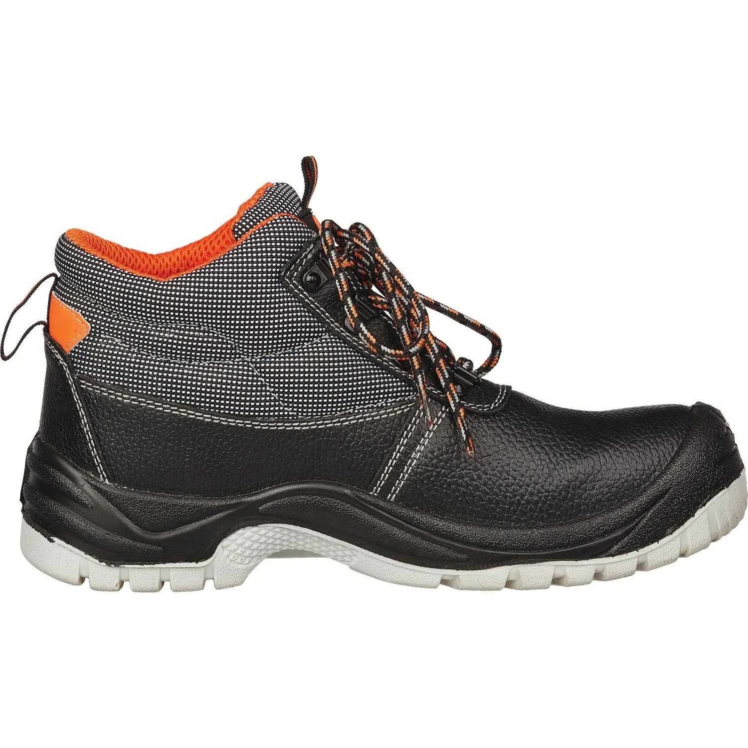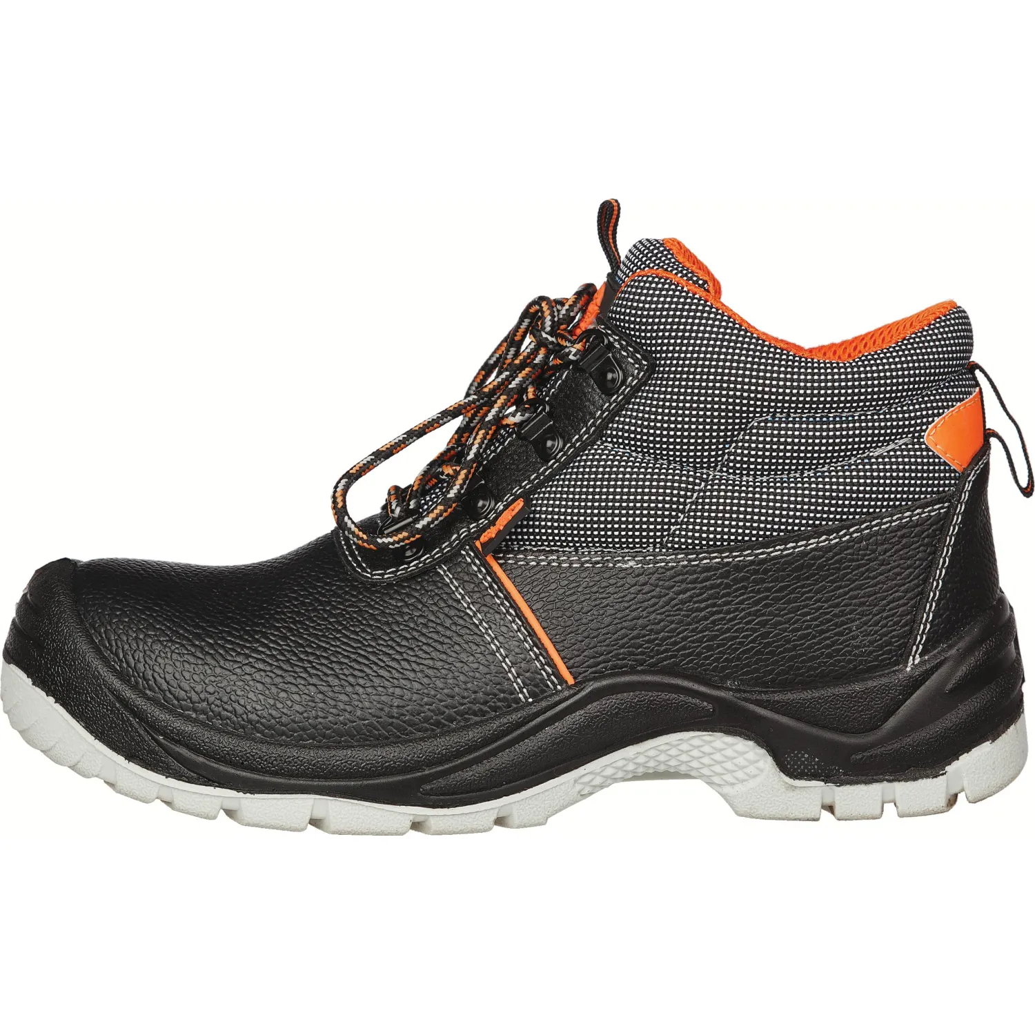 Верхняя часть ботинок изготовлена из натуральной кожи, обеспечивающей прочность и долговечность. Глухой клапан защищает от попадания внутрь влаги, пыли и мелких частиц, что повышает уровень комфорта и сохраняет внутреннее пространство обуви сухим. Объемная колодка специальной конструкции обеспечивает удобство при длительном ношении. Подносок выполнен из композитного поликарбоната, способного выдерживать удары силой до 200 Дж, что обеспечивает защиту пальцев ног.
