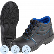 Верх обуви выполнен из тисненой кожи для защиты ног от общих производственных загрязнений. Ботинки имеют настрочную союзку, задинку, глухой клапан и мягкий кант на текстильной подкладке-сетке из синтетических нитей. С внешней и внутренней сторон в местах настрачивания союзки проложен светоотражающий кант. Ботинки фиксируются на ноге с помощью шнуровки, проходящей через металлические петли. Изготавливаются с термопластичным подноском ударной прочностью 5 Дж.