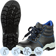Это универсальная модель ботинок для работы в летний и демисезонный период. Защищает от общих производственных загрязнений, механических воздействий (истирания), от скольжения по зажиренным поверхностям, от химических факторов (от сырой нефти от нефтяных масел и продуктов тяжелой фракции, от растворов кислот концентрации до 20%, от растворов щелочей концентрации до 20%), рекомендована для использования в условиях, требующих надежной защиты ног. Срок эксплуатации после выдачи обуви составляет 70 дней при соблюдении правил ухода, эксплуатации и хранения.