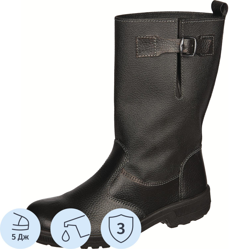 Материал верха обуви из натуральной кожи и кирзы. Имеют термопластичный подносок. Застежка на ремне. Союзка изготовлена из юфти, голенище — кирза.